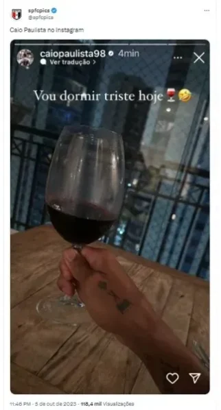 Após a última cobrança de pênalti, Caio Paulista, lateral-esquerdo do Tricolor, gerou grande repercussão nas redes sociais ao postar uma foto com uma taça de vinho e a legenda “vou dormir triste hoje”. É importante ressaltar que o atleta conquistou a admiração dos torcedores devido às suas excelentes atuações.