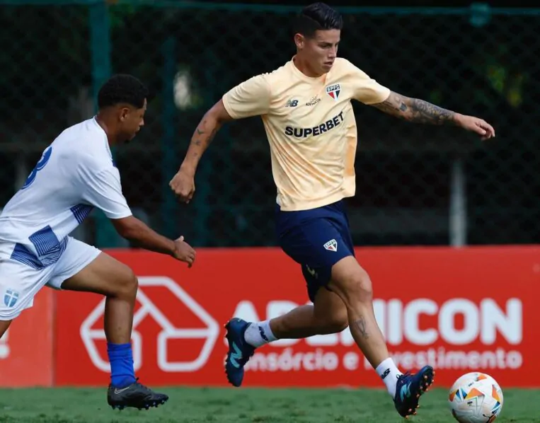 Na manhã deste sábado, o São Paulo realizou um jogo-treino no CT da Barra Funda, enfrentando o Atlético Mogi. Com James Rodríguez entre os titulares, a equipe venceu por 10 a 0.