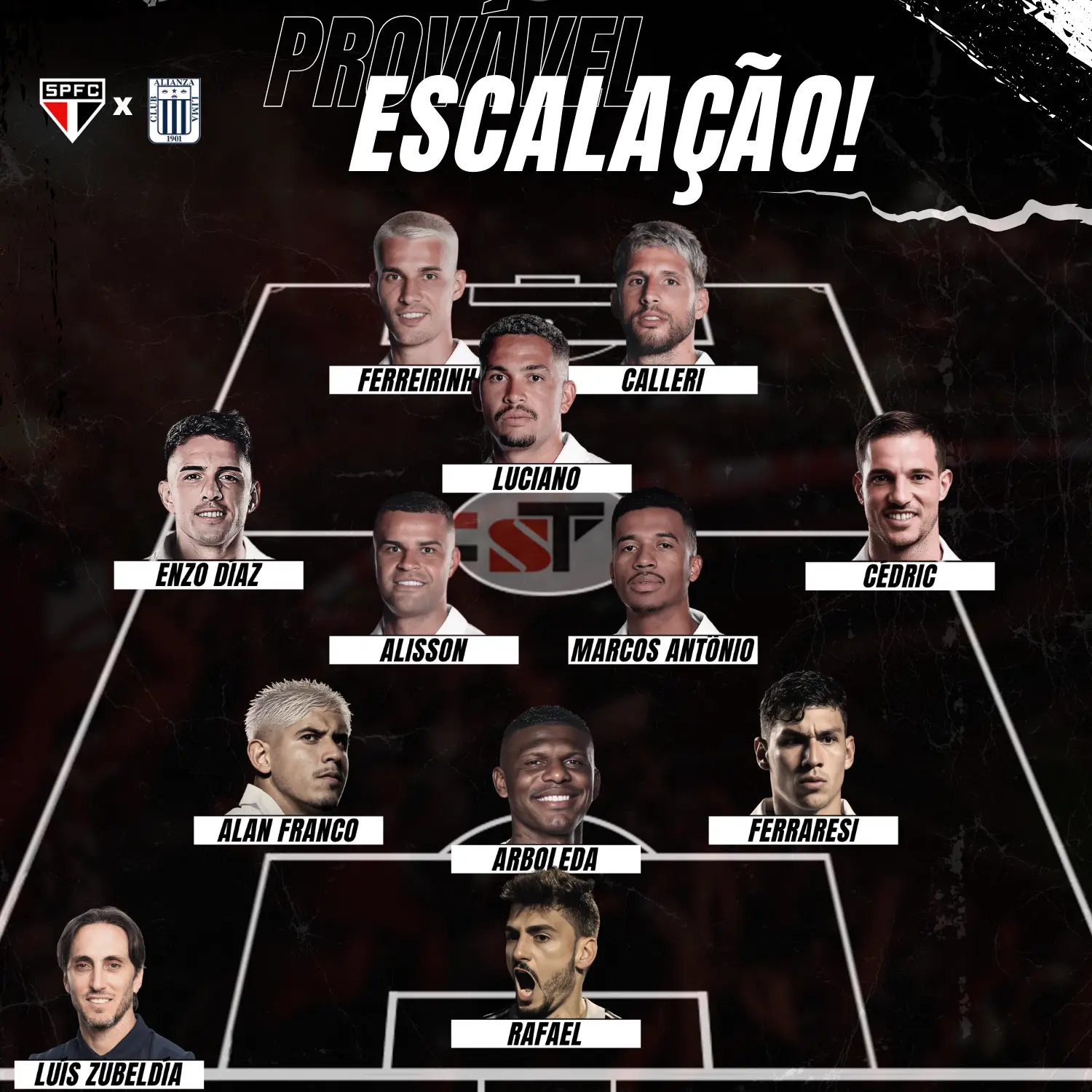 PROVÁVEL ESCALAÇÃO: Rafael; Ferraresi, Arboleda, Alan Franco, Enzo Diaz (Wendell); Alisson, Marcos Antônio; Cédric, Luciano, Ferreira; Calleri