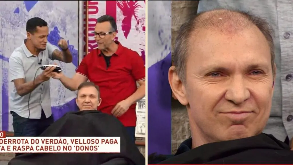 Ontem, o ex-jogador do Palmeiras e comentarista Velloso mostrou confiança na vitória do time de Abel Ferreira no Morumbi diante do São Paulo e apostou com Souza que, se o Alviverde não vencesse, ele rasparia o cabelo ao vivo. Com a vitória tricolor, Neto não deixou passar.